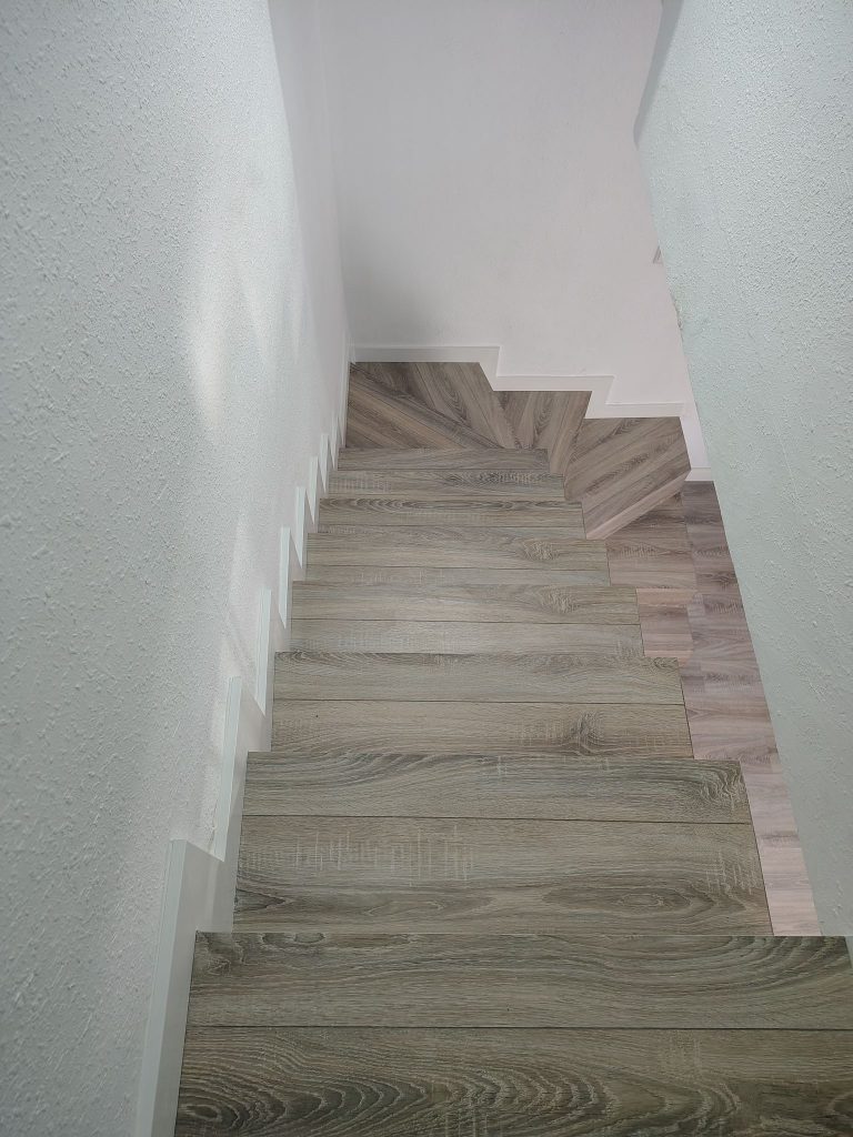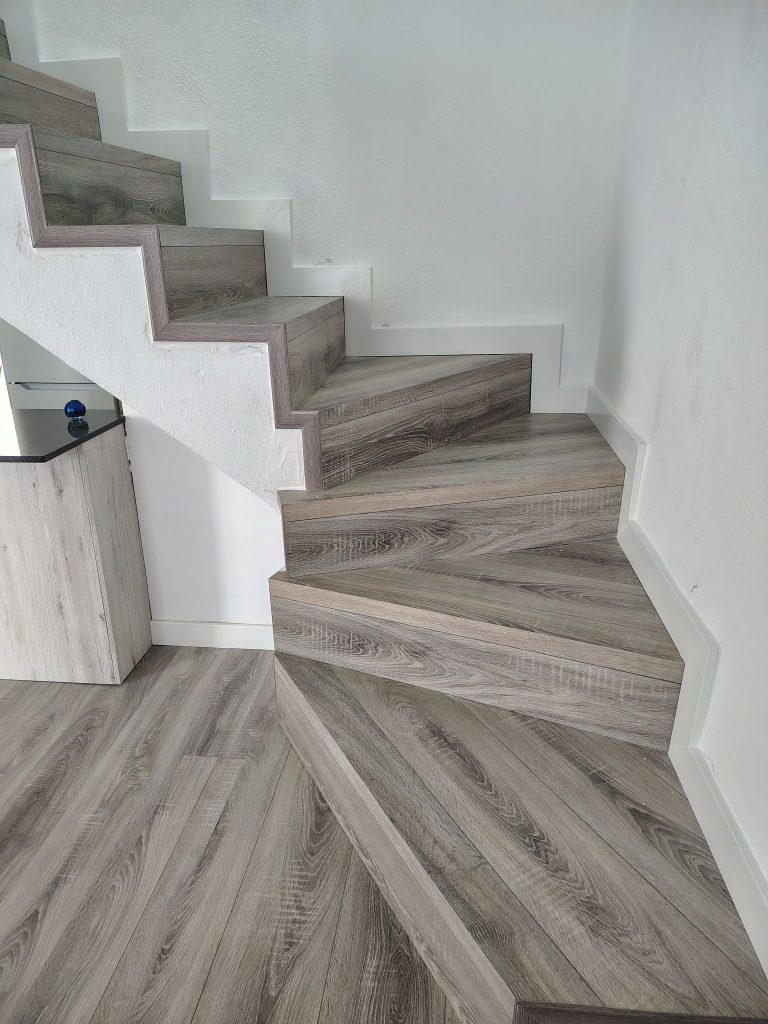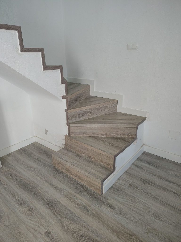 Hemos terminado un nuevo trabajo en Velesol (Vélez-Málaga), transformando por completo la escalera de María y su novio con un elegante revestimiento de suelo laminado Egger. La elección de este material no solo aporta un acabado cálido y sofisticado, sino que también garantiza resistencia y durabilidad en una zona de alto tránsito como las escaleras.